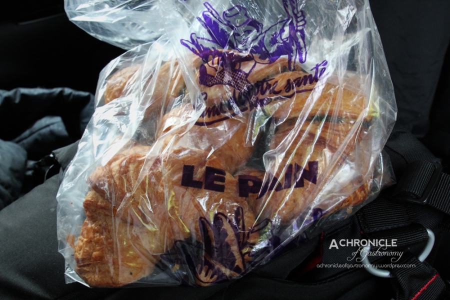 The towns we were going to visit after lunch were small, so we’d have a better chance of getting something to eat in Sarlat. We went into a bakery in a laneway near the Christmas market. It appeared that they were closing soon. Mum got a bag of 3 croissants and a chocolate twist for €2. I bought a champagne rustique for €1.50. The pricetag said the bread was €2.50, but they must have been trying to get rid of the bread. I also noticed the pricetags said ‘Banette’ on them so I wonder if they’re delivered. The rustic bread was dense and meaty. Mum claimed it was her favourite bread so far. I liked it, but not as much as the pain aux noix from Le Fournil Maxipaul.