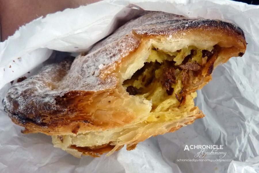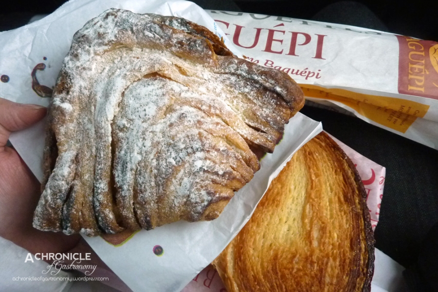 We looked out for a bakery on the way to the McArthur Glen factory outlets. We stopped by the first one we saw and I was tossing up between baguette Finlandaise (€1.07) and baguette Régal (€1.30). I didn’t know what they were and simply picked the Finlandaise. In hindsight, maybe I should have gone for the more expensive Régal. It seemed like the Finlandaise just had poppy seeds in it. Dad got a Nepolian or something. It was a folded pastry that turned out to have some sort of custard filling with raisins. Mum got a palmier (€1.30), which wasn’t very good, especially after having the one yesterday. It tasted a bit weird and was probably the worst one we’ve had during the trip.