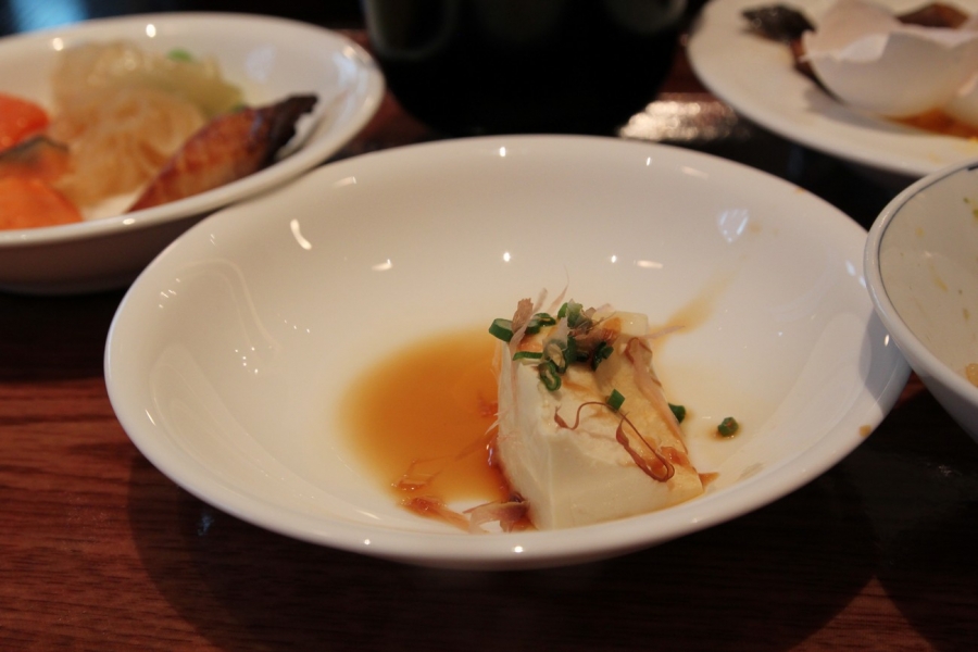 Our last breakfast in Japan. There were salads, a vermicelli/potato/carrot cold stew, teriyaki mackerel, cured salmon, miso, porridge, rice, soft-boiled eggs, scrambled eggs, tofu, frankfurts, a nice selection of interesting breads, cereal (corn flakes, chocolate cereal and granola), lychee, oranges and grapefruit. There was a little bowl of bonito next to the tofu too.