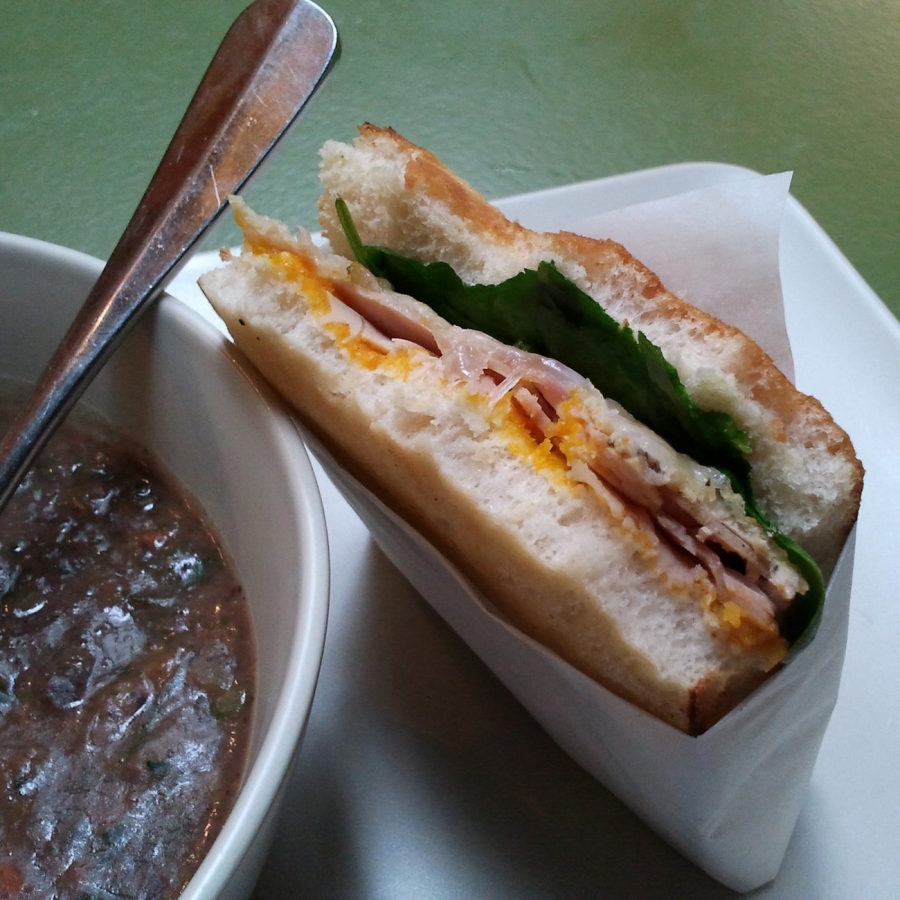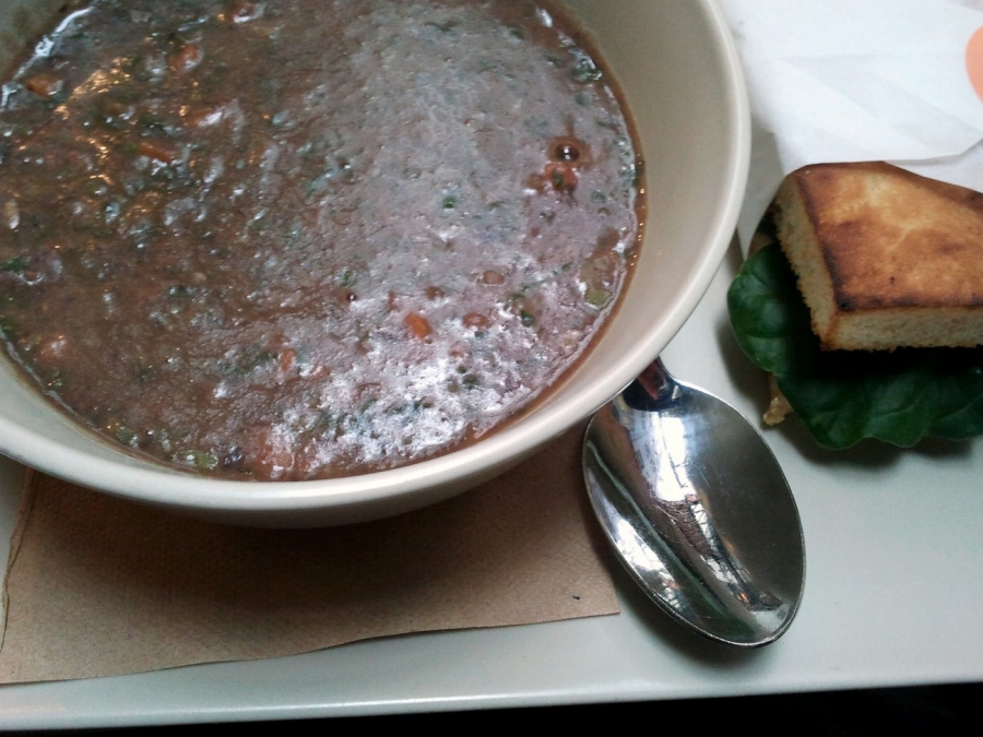 The half-fugazza was quite large and I wonder if it’s really half a regular size or slightly larger. True to their word, the bread was delightfully soft with a crispy outside and not oily like the focaccias I used to get from Safeway/Coles. The fugazza didn’t have a lot of filling, but I thought it was nicely balanced. The hearty and tasty tuscan bean soup had potato, carrots, onions, celery, various beans (e.g. kidney beans, borlotti beans), chopped cavolo nero and herbs. The meal was satiating and wholesome and seemed like better value compared to a lot of the $10-and-under lunches I’ve had. I’ve heard that all fugazzas are $5 after 2pm. I’m not sure if that deal is still current, but it would definitely be worth a look if in need of a late lunch/early afternoon snack.
