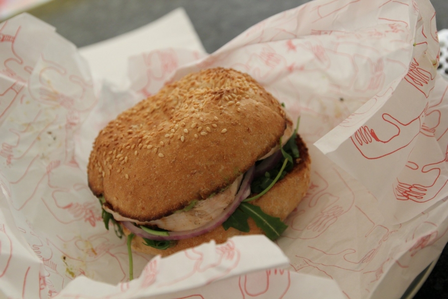 Today I tried the Perfect Pear burger from Grill’d: Grilled chicken breast, poached pears, fig paste, avocado, Spanish onion, rocket & shaved parmesan. I knew it was going to be a sweet burger; I didn’t expect it to be quite this sweet. Virtually all the sweetness came from the fig paste, which was the first layer on top of the bun. It wasn’t so bad if I ate it upside down, but I ended up scraping half of it off anyway. I still prefer savoury and I liked the Hot Hombre better than this one.