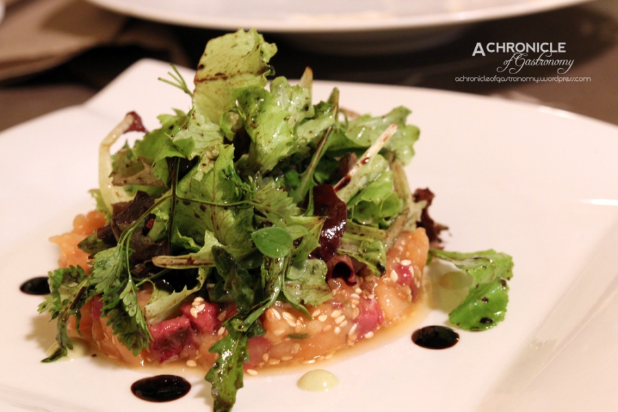 - Smoked Salmon and Smoked Duck Magret Tartare w. Sesame Oil