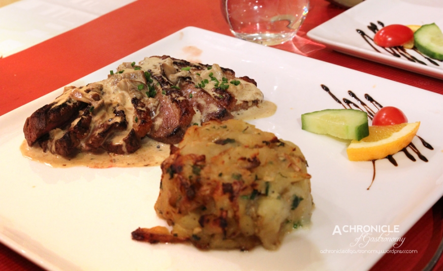 - Magret of duck with cêpe sauce and sarladaise potatoes
