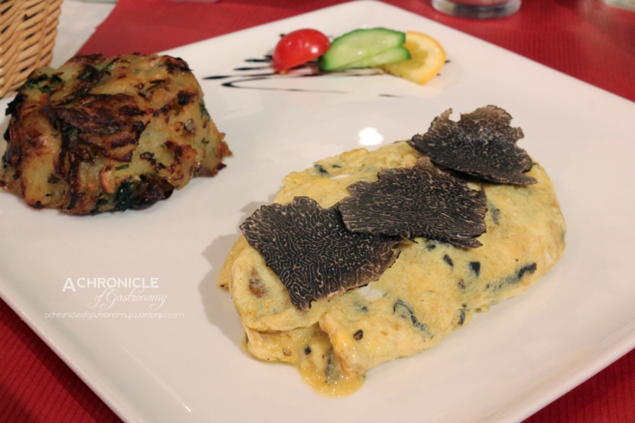 The walnut salad was dressed with Dijon mustard and the walnuts were fresh. The foie gras here was nicer than at Bistro de l’Octroi; it was smoother and didn’t have much of the typical liver taste. Its flavour was quite similar to the foie gras in mum’s mashed potatoes at La Maison de Halles. The preserved goose breast was also better here. Dad’s duck was overcooked, but mum’s was fine. The cêpe mushrooms, a regional mushroom, had a very intense and nice flavour. Before ordering my omelette I confirmed that it did in fact contain truffle, not just truffle oil. There were little slivers of truffle throughout as well as three thin slices on top. I was happy to see that the omelette was not overcooked – there were still a few parts were the egg was slightly runny. Though simple, I quite enjoyed mine. I could smell the truffle every time I lifted the fork to my mouth. The potatoes were also good. The garlic wasn’t as strong, but I think I preferred the taste of the sarladaise from yesterday.