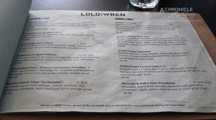 Placed in a quiet street, Lolo and Wren has been a local favourite for quite a while. Since I was in the area I thought I’d pop in to see how good it really was.