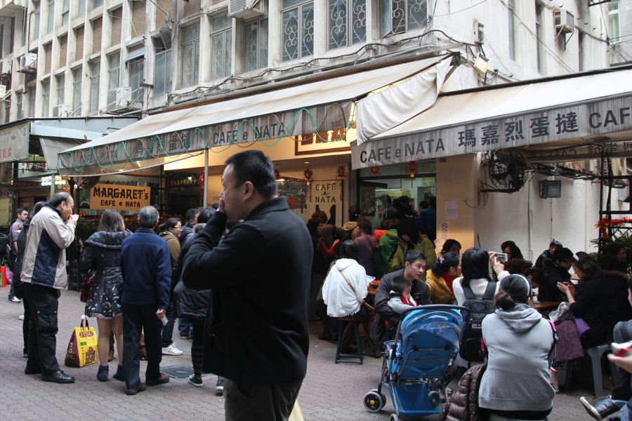 Margaret’s Café E Nata is one of the two cafés in Macau famous for its Portuguese egg tarts. This small and quaint cafe had one queue for ordering and another for collecting orders that weren’t ready. The tarts were so popular there was almost always a long collection queue – they couldn’t make tarts quickly enough. Each tart was only 8MOP each (just under 1AUD). There are other items on the menu, but the majority of customers buy the tarts with maybe a hot drink. Unless the person was getting take-away, people received their tarts on a paper plate, sometimes piled high with tarts to share. For some reason we were given a box. When the tarts finally arrived they were piping hot as they had just come out from the oven, and what a guilty pleasure they were. The tart was nice and crispy and the egg custard was smooth but not too sweet. There wasn’t a lot of caramelisation on top of all them – a feature supposedly characteristic of Portuguese tarts – but seeing as it was my first really good Portuguese egg tart I didn’t care; I was quite happy to be naive.