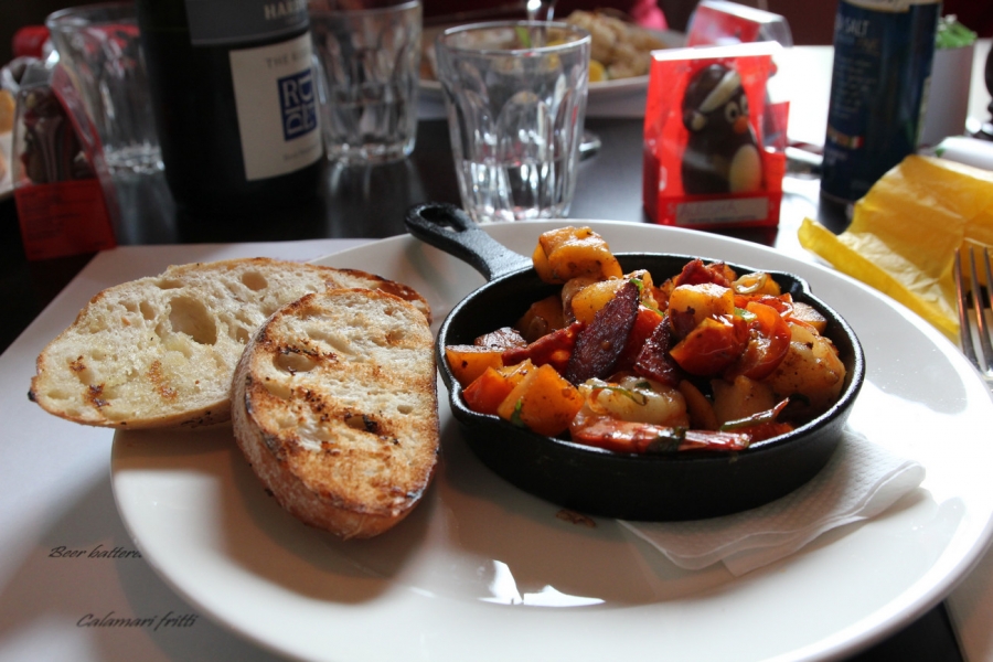 - Roasted Crystal Bay Prawn anad Spanish Chorizo w. Cherry Tomatoes, Olives, Olive Oil, Ciabatta $16