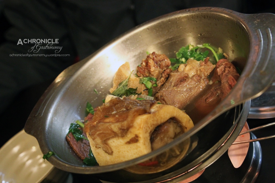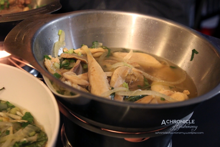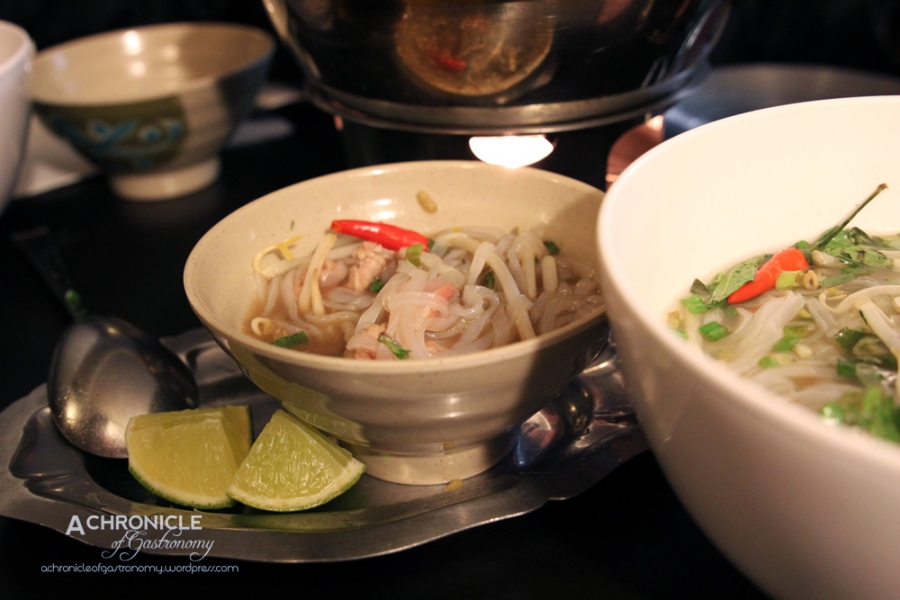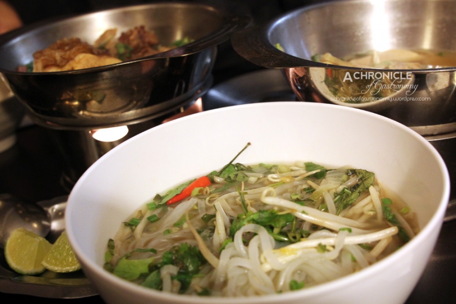 There wasn’t any more space in the upper seating area so we were led downstairs to the kitchen level. It was dark and a bit weird because the atmosphere was almost like we were sitting awkwardly in a home kitchen. My heart fell a little when I saw the special pho cost €14. We ordered one special beef pho and one special chicken pho. There was also a regular beef pho available for €10, but doesn’t come with the beef bones. The pho was presented in two bowls: one with the noodles and a metal one with the broth, meat and herbs, which was heated by a candle. The broth was meant to be added into the noodle bowl as needed. The chicken pho came with about two drumsticks-worth of chicken. The beef was better than the chicken and had quite a nice flavour, but I didn’t think it was worth €14.