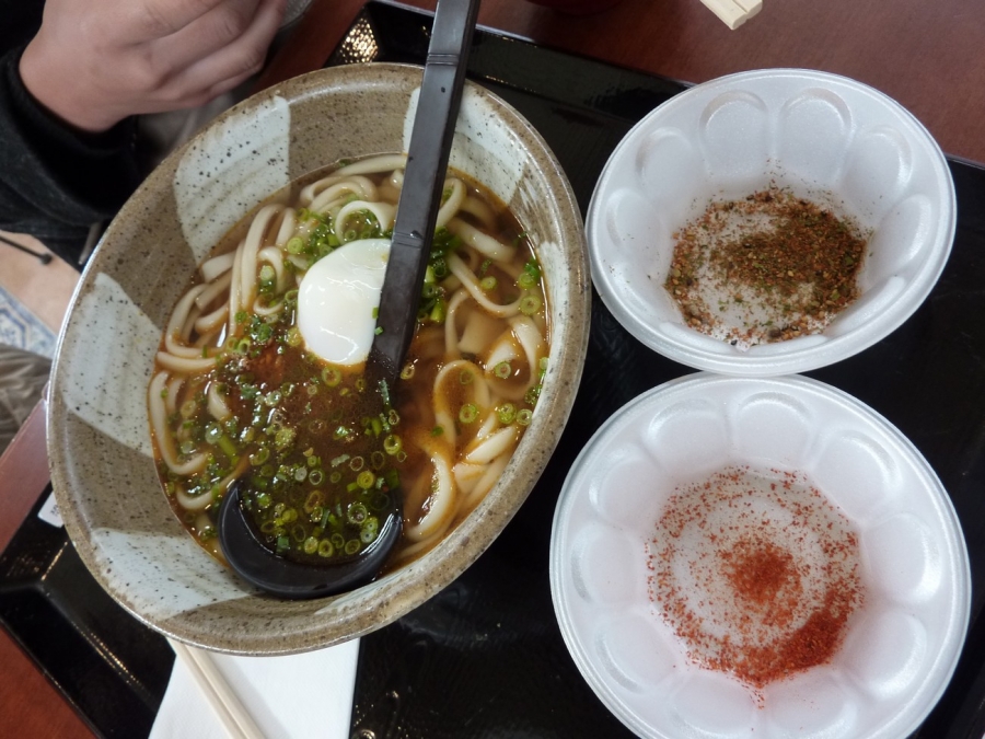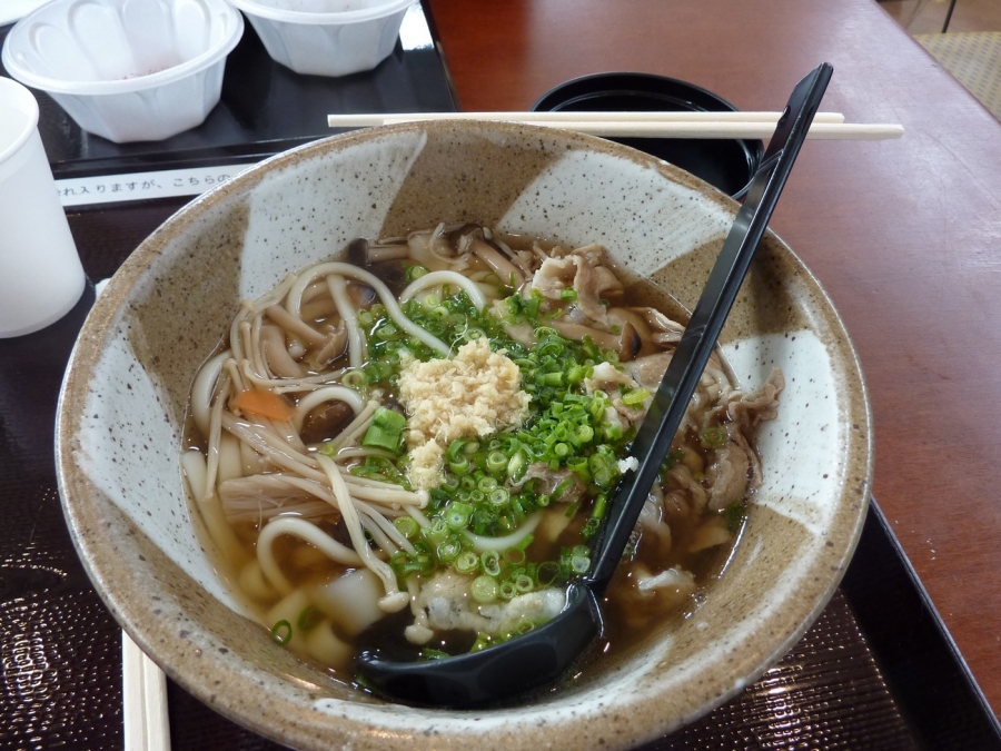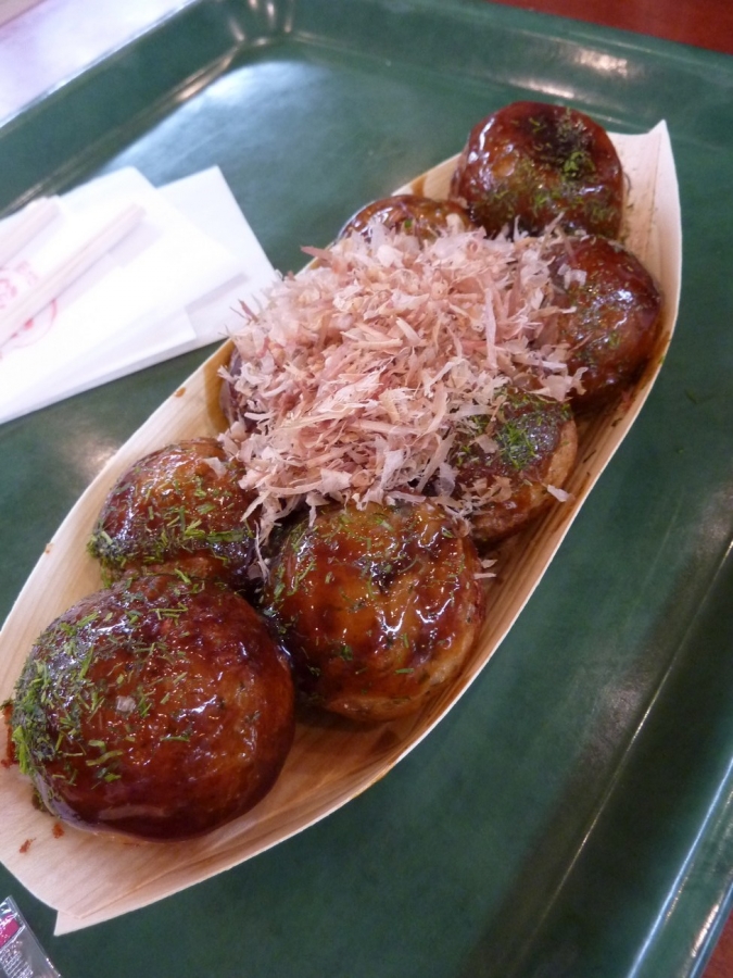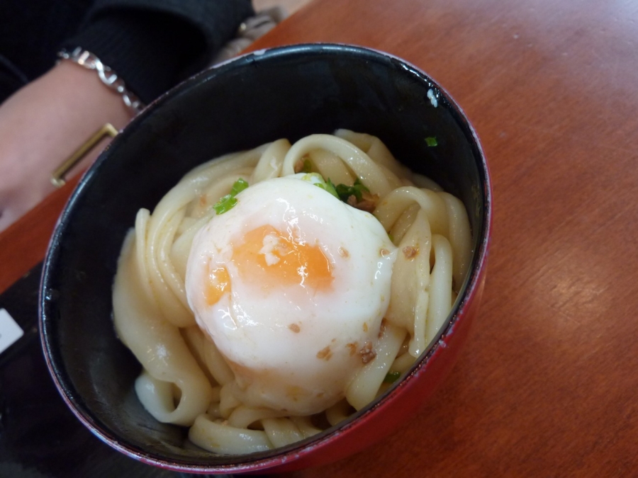 Being our last lunch meal in Japan, I wanted something that I could only get here i.e. a good bowl of Japanese noodles. There was only one noodle store here. A2 got udon with an egg and some mince (it tasted a bit like bolognaise to me, but mum liked this better than the one I ordered). Mine was a black pork udon; both were ¥740. For some reason there were flat bits in the udon, like it got squashed. Mum thought the noodles were nice, but they weren’t as smooth as other ones we’ve had. Mum also wanted a tray of takoyaki (¥500). She thought they were better than the ones in Osaka, but I found they were too doughy. Not exactly what I was hoping for our last lunch in Japan, but it was passable.