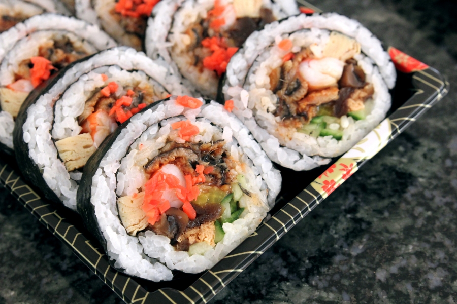 - Futomaki – Anago, Prawn, Cucumber, Tamago, Beancurd, Gourd, Shiitake Mushroom and Sakura Dembu (fish flakes) $17