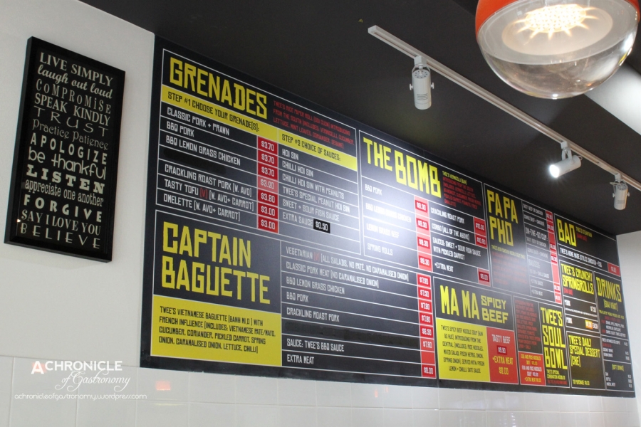 I was invited to have lunch at Twee’s Hut Vietnamese Favourites, which has an emphasis on fresh and healthy dishes from various regions of Vietnam. Much of their menu is taken from family recipes, including the aptly names ‘Papa Pho’. Also on the menu are rice paper rolls, banh mi, bun, bun bo hue, springrolls and freshly squeezed fruit and veggie juice. Also on the menu is Twee’s Soul Bowl, which was described as being somewhat similar to pad thai. The restaurant is owned and run by the husband and wife team, Ricky and Twee, who work on the floor and in the kitchen. Service was friendly and attentive, with staff happily offering to walk first-timers through the menu.