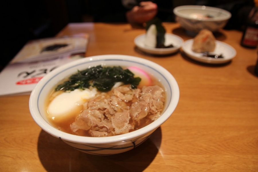 I had an egg and beef udon (¥610) and dad had soba with a vegetable and seafood tempura thing. The tempura had vegetables and shrimp lumped together then cooked as a whole tempura in a shape of a flat, round cake. The udon was so much better (and cheaper) than what we get in Melbourne. The texture was smooth but still had some bite.