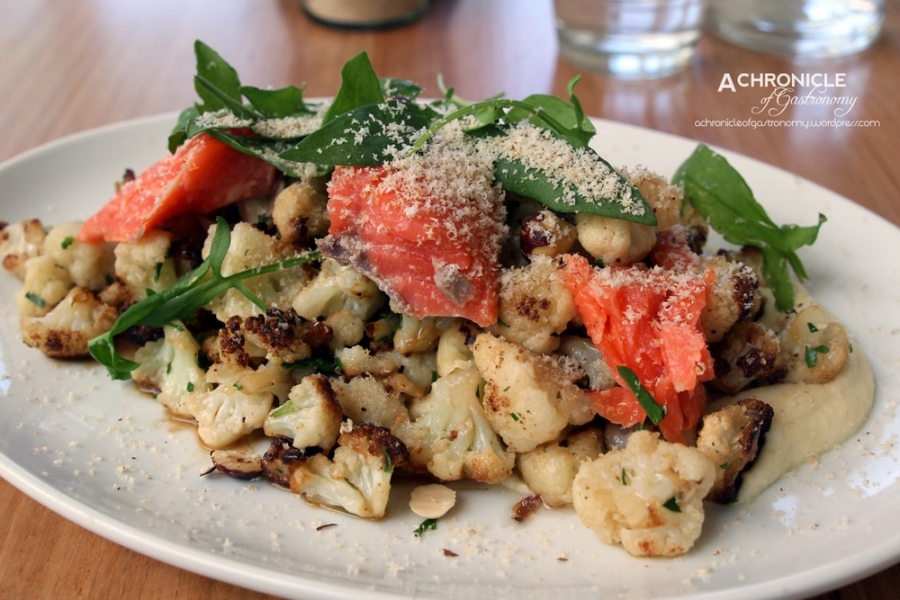- Roasted Cauliflower Salad, Ocean Trout and Hazelnuts ($15)