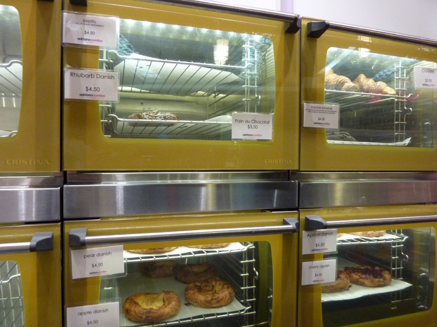 We bought 5 macarons for $2.5 each – 2x blackened vanilla, salted buttered popcorn, salted butter caramel, and annunziata chocolate (dark chocolate). The shopgirl said passionfruit was one of his best, but they weren’t making them at the moment. We also bought a few pastries, which surprisingly weren’t that expensive compared to others.