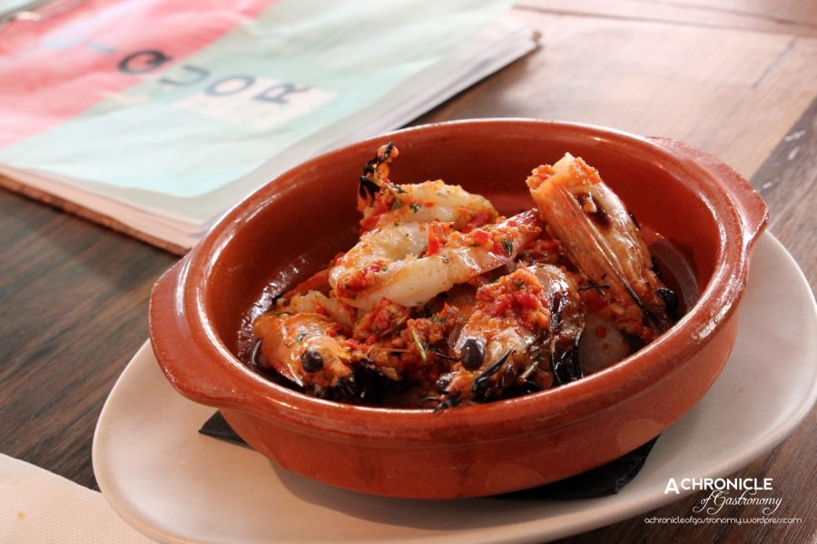 An extra $8 was added for the king prawn pil pil, which had a nice, fresh flavour. The Pedro Ximenez Braised Pork Jowl with Celeriac puree was quite good, but didn’t stand out as much as the Lamb Ribs with Romesco. The romesco sauce on the ribs was similar to the one used with the corn and the lamb itself was tender with some nice crispy bits on the outside.