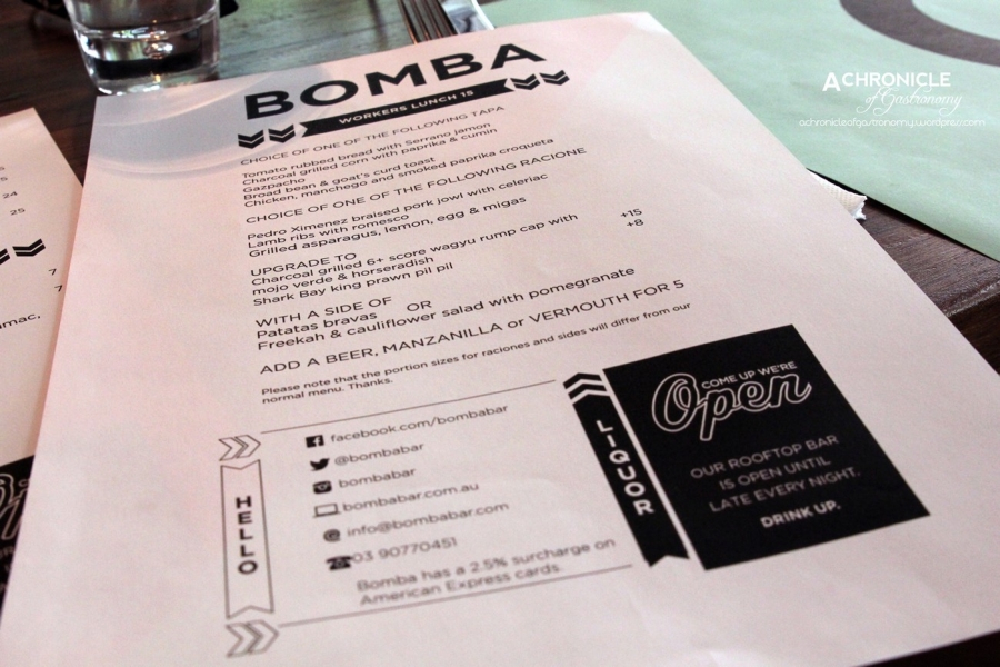 The Aylesbury has recently been transformed into Bomba, a casual tapas bar. Although mum was sorely tempted by the paella on offer, we all ordered the Workers Lunch, which included a choice of tapas, raciones and side dish.