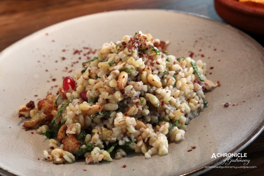 Underneath the patatas bravas was a very flavourful tomato paste, which gave the dish more interest. One of my favourites for the day was the Freekeh and Cauliflower Salad with Pomegranate. There was a wonderful contrast between the chewy freekeh, soft cauliflower, crunchy pinenuts and sweet pomegranate seeds. I personally preferred it without the mint.