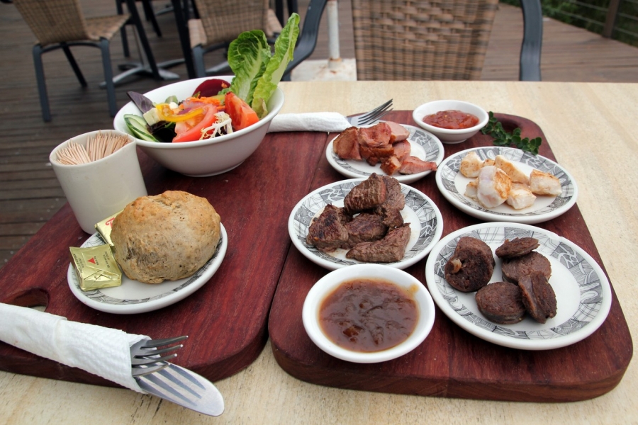 This cafe is situated in the Brambuk National Park & Cultural Centre, Halls Gap. After quickly browsing through their menu we went with the tasting platter. The platter came with a warmed damper roll, garden salad with feta, four different meats (clockwise starting from top left: duck, crocodile, emu sausage, kangaroo), a native tomato relish and a chutney. We also sampled different types of Australian herbal teas (lemon myrtle, wattleseed and another one).