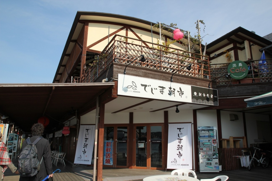 After checking out of the hotel we drove down to Dejima Wharf where there were a few restaurants that sold mainly seafood. We settled on Dejima Asaichi because their posters showed some interesting-looking lunch sets. A2 and I wanted the same set for ¥1000. It consisted of a piece of tofu with soy sauce, what looked like egg custard with a prawn stuck inside, rice topped with a piece of fish and some sort of fritter with a light-coloured sauce. Unfortunately it was sold out and I was pretty disappointed because I was really looking forward to tasting the different dishes. The ladies sitting behind me had ordered it and it looked quite good. Dad wanted to try a boiled/braised fish that looked like a pig. That fish had run out too so they used a different type of fish instead. Both A2 and mum had the sashimi set; I settled on what I thought might have been flying fish but it turned out to be just fried fish (lost in translation), which made my lunch even more disappointing, especially because the fish pieces were very thin. At least panko crumbs taste better than Western style crumbs. Everyone’s dish came with miso soup, pickles, a creamy salad (mum believed it had some sort of fish), rice and some black strands of something with some sort of bean.
