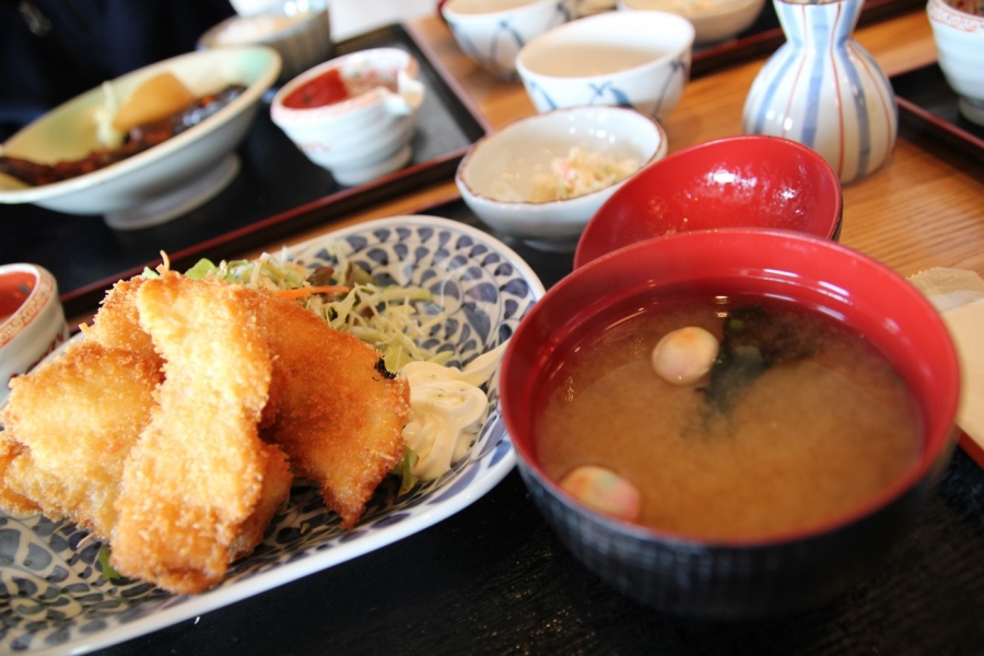 - Fried Fish Set: Fried Fish, Creamy Salad, Pickles, Miso Soup