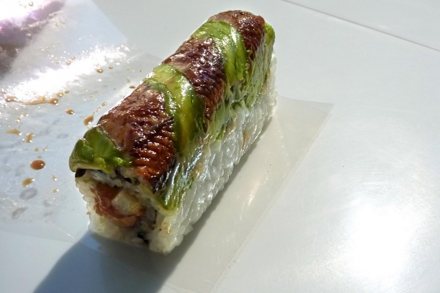 - Dragon Roll – Eel and Avocado w. Spicy Tuna and Cucumber Filling