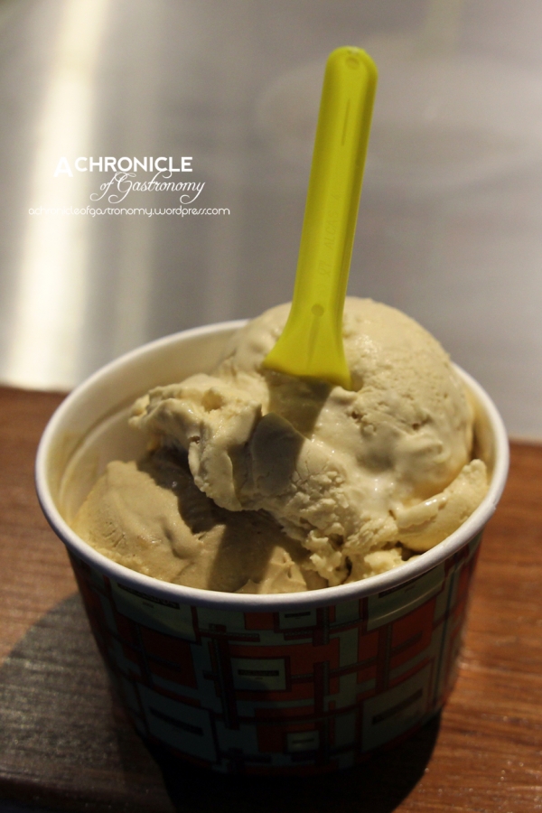 Both of us went for a 2-scoop cup, which was $6. I had Boss’s Wife (hazelnut & coffee gelato with white chocolate and hazelnut praline ganache) and the popular Salted Caramel and White Chocolate.