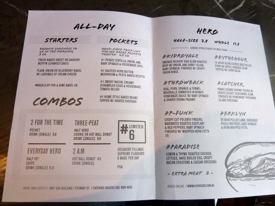 Hero also serves a special sub called Limited 6, available only as a full-size and only six are made per day. The Limited 6 changes every two weeks.
