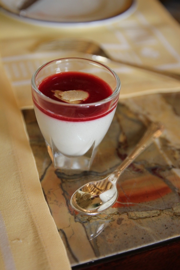 - Lychee Mousse w. Raspberry Syrup and Almond