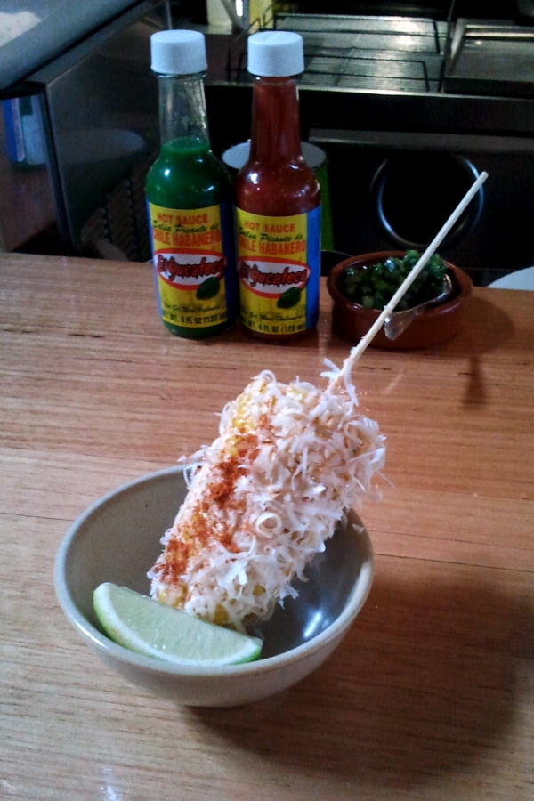- Elotes callejeros – Street Style chargrilled corn, queso, chipotle mayo & lime ($4.9)