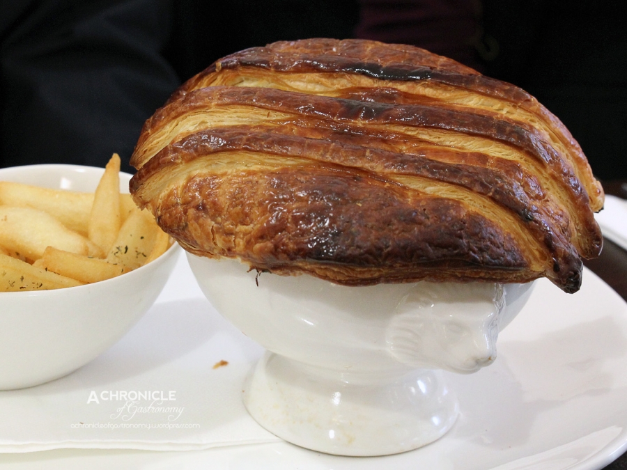Also ordered was the housemade chicken pie with mushrooms with rustic homemade chips ($20). It was the type of pie that didn’t have a bottom crust and the top crust was thin and very crispy. I didn’t try any, but the filling was described was quite soupy and could have perhaps done with a bit more flavour.