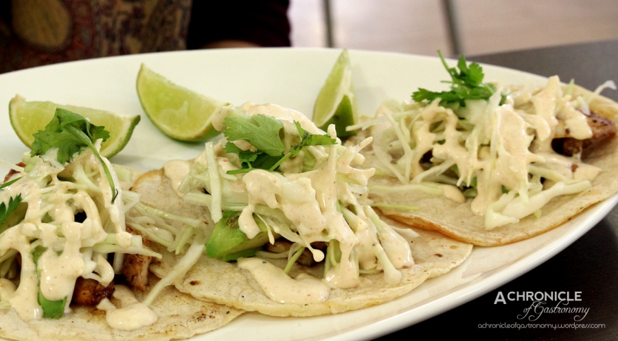 The Cabo Tacos were corn tacos filled with baja snapper, avocado, sweet coleslaw and mayo ($17). They were quite full when folded over so A2 had a bit of trouble eating it neatly. She said they weren’t bad, though would have liked it if the tacos were a bit more browned.