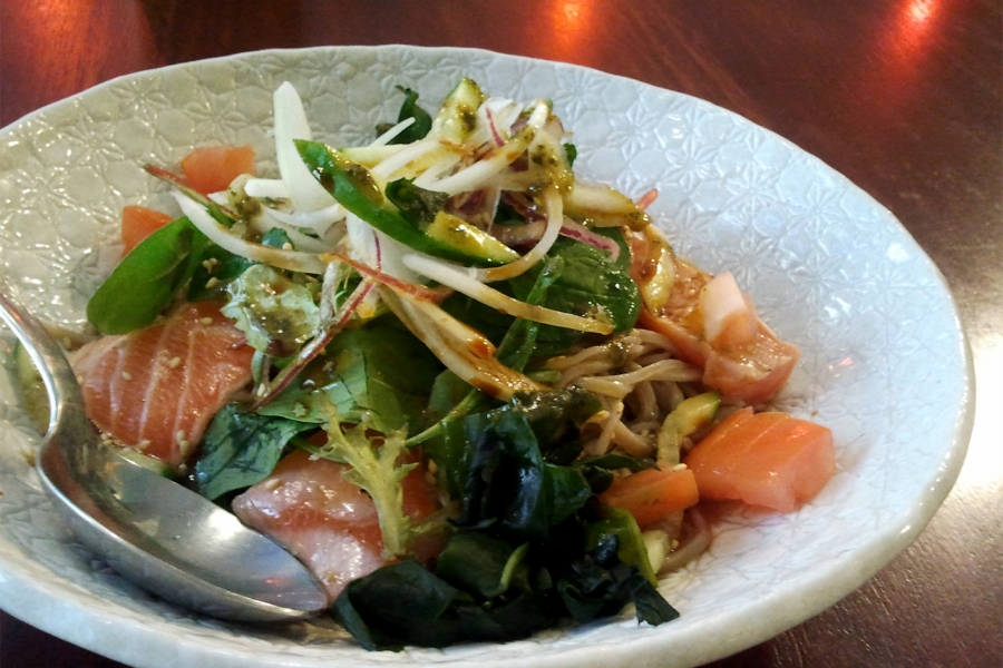 The salmon soba salad ($18) came with 5 lightly seared pieces of salmon, basil sauce, salad leaves and a small amount of broth at the base. I wasn’t too sure about the raw onion because it seemed to overpower the flavour of the soba (and also because there was one rather large slice of onion in my plate), but overall it was a simple and tasty lunch.