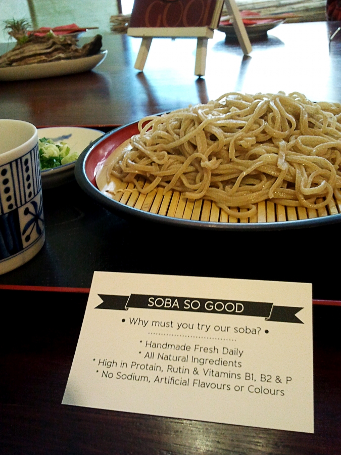 There were a range of soba offerings ranging from $10 to about $19 under the general categories of hot and cold. The hot soba came in broth, whilst the cold options came with a separate/less broth. For my first visit I thought I’d go for the Seiro Soba ($10), which is cold soba presented with dipping sauce (soba tsuyu). Apparently this is the traditional way to truly appreciate soba, and given the soba is handmade it seemed fitting.