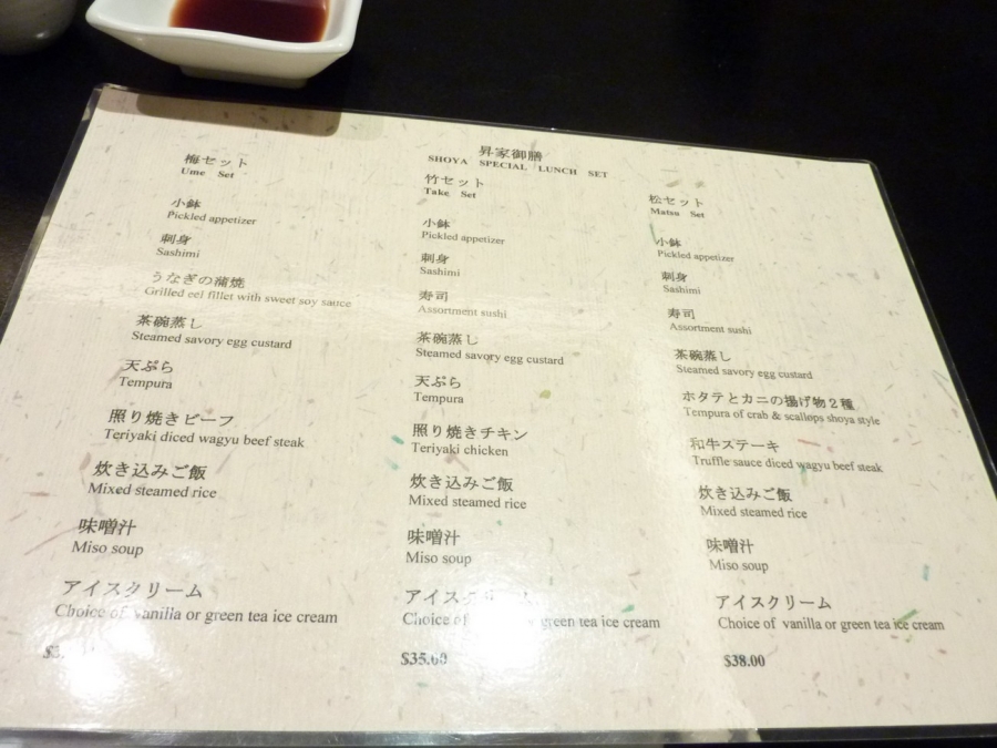Went out for lunch at Shoya before my cousin left for Sydney. We each chose a different set lunch.